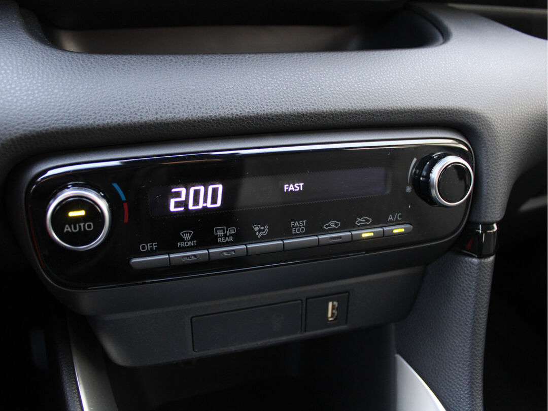 Deze Yaris is onder andere voorzien van: Achteruitrijcamera, Adaptive Cruise control, Climate control, Apple Carplay, Android Auto, Bluetooth, DAB+ radio, Spraakbediening, Elektrisch verstelbare buitenspiegels, Elektrische ramen voor, Centrale vergrendeling op afstandsbediening, Stuurbekrachtiging, Stuur in hoogte en diepte verstelbaar, Bestuurdersstoel in hoogte verstelbaar, Isofix bevestiging voor kinderstoeltjes, Verkeersbordherkenning, Lane assist en Botswaarschuwing.