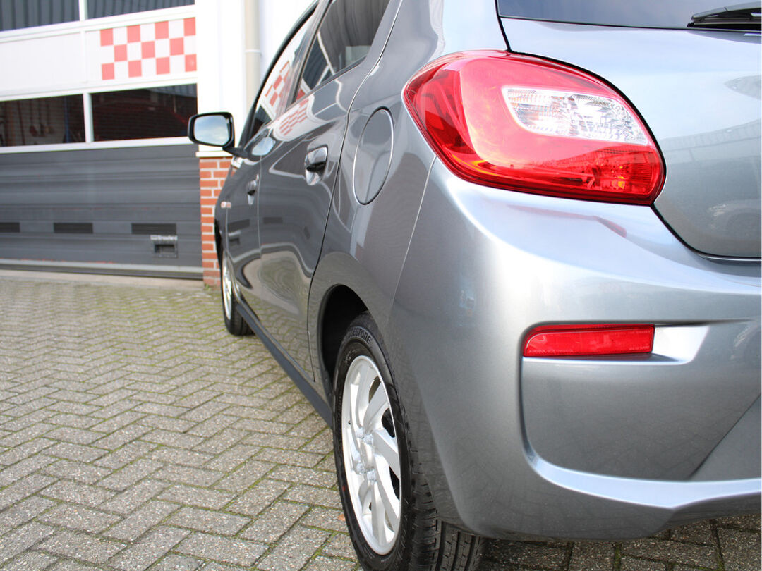 Nette dealer onderhouden origineel Nederlandse Mitsubishi Space Star 1.0 Intense Automaat. Deze Space Star is onder andere voorzien van: Airconditioning, Stuurbekrachtiging, Elektrische ramen Voor + Achter, Elektrisch verstelbare en verwarmbare spiegels, Bluetooth, Radio/CD met spraakbediening, USB en AUX- aansluiting, 14 inch Lichtmetalen velgen, In hoogte verstelbare voorstoelen, Centrale vergrendeling op afstand, Donker glas achter en ISOFIX bevestiging voor kinderzitjes.