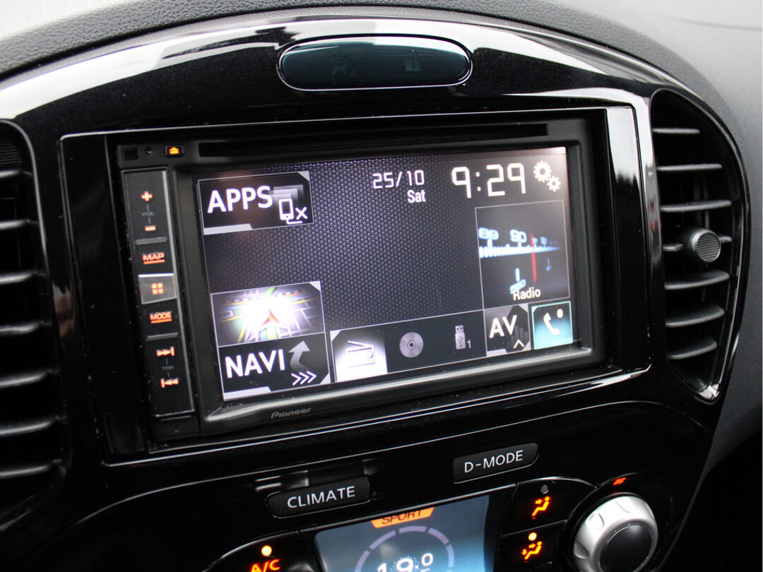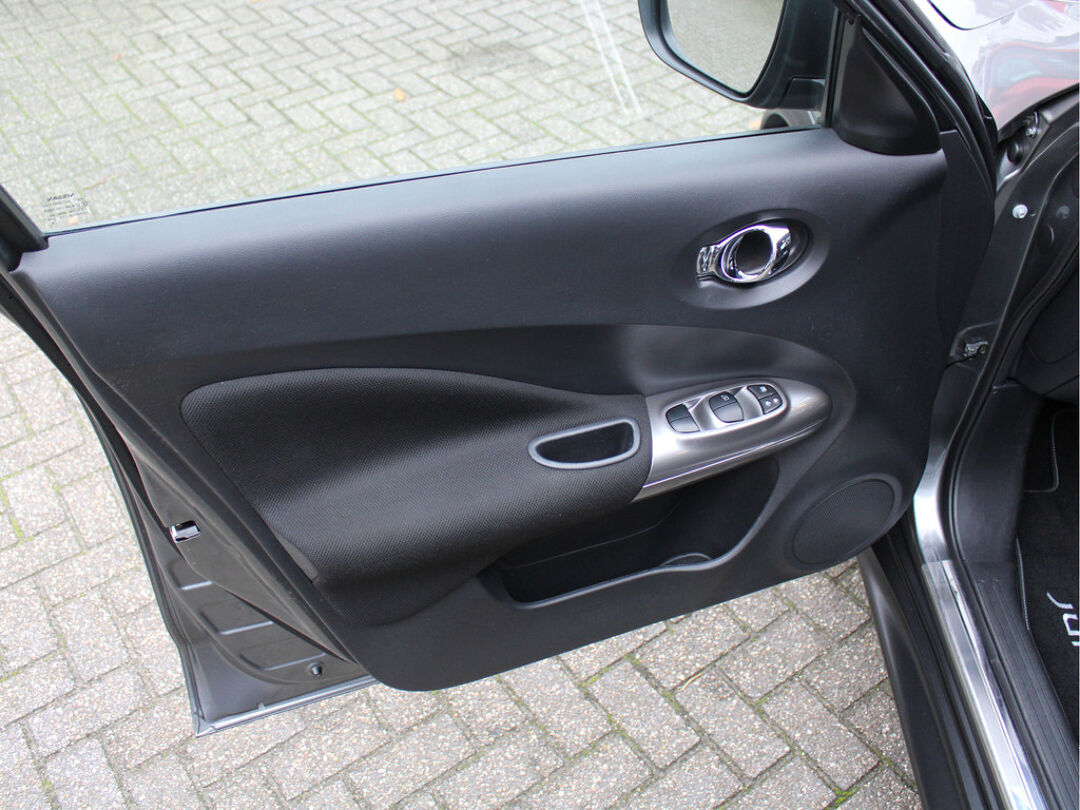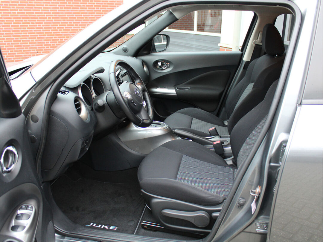 Nette Nissan Juke 1.6 Acenta Automaat met Navigatie, Centrale deurvergrendeling met afstandsbediening, LED-dagrijverlichting, Mistlampen voor, 17 inch licht metalen velgen, Donker glas, Parkeersensoren achter, Elektrische ramen voor + achter, Elektrisch verstelbare buitenspiegels, Bandenspanning controlesysteem, Radiobediening op het stuurwiel, Cruise control, Lederen stuurwiel, AIRCO, Climate control, Bluetooth telefoon verbinding, USB + AUX aansluiting, Bestuurdersstoel in hoogte verstelbaar, ISOFIX bevestiging voor kinderzitjes, Hoofdsteunen achter, Bekerhouders voor, Drive mode, Uitlaatsierstuk, Pianolak afwerking in het interieur en Stuurbekrachtiging!